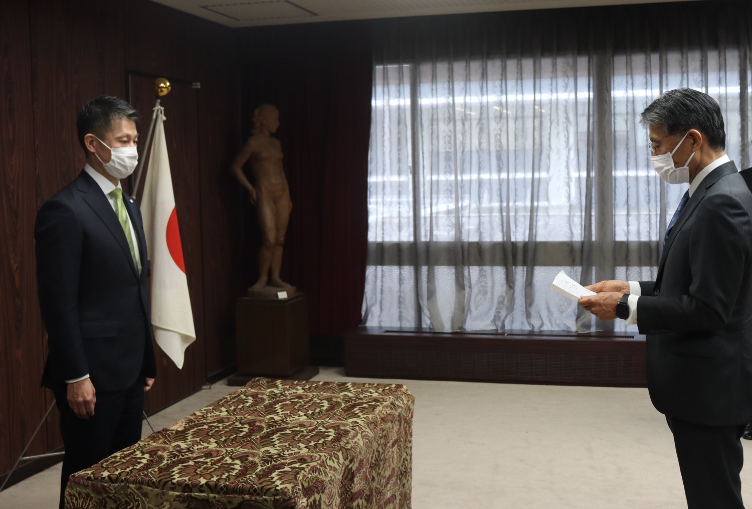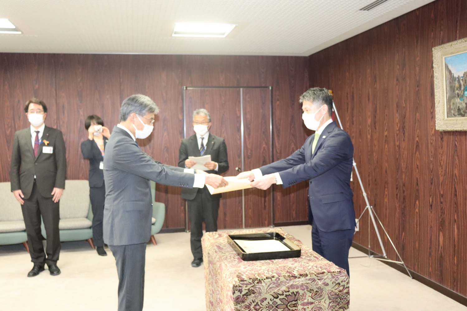 湯崎知事より賞を拝受し、受賞者代表として謝辞を述べさせていただきました
