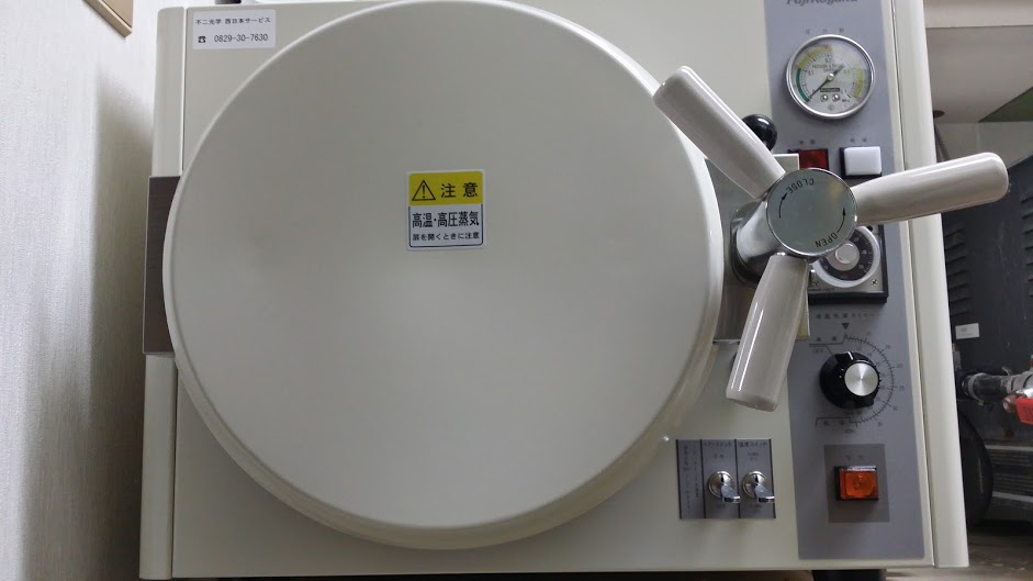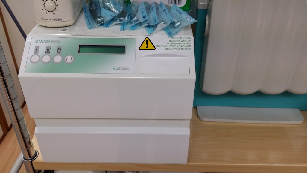 大型のオートクレーブが一般の機材用、小型のオートクレーブはタービンヘッドなどの切削器具専用ですが、あわせて75万円ほどの予定外出費で大変です。ただオートクレーブがないと清潔な治療をすることができませんので、致し方ない出費として、すぐ対応するしかありません (-_-;)