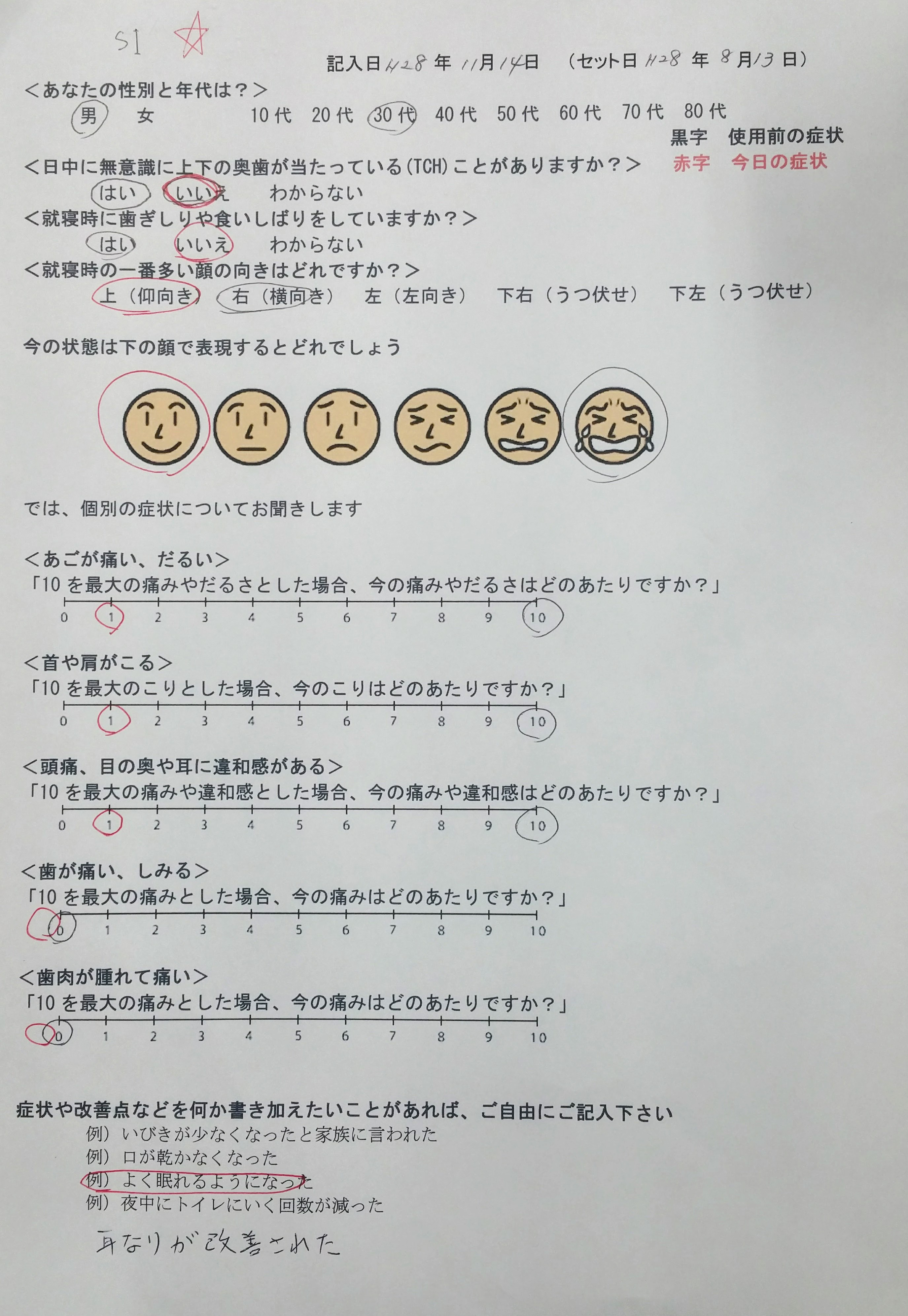 以前の著効例 TPC(舌姿勢補正器)でTCH治療8 患者アンケート5 (6ケース)