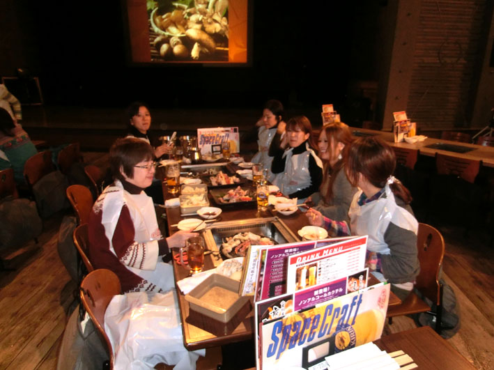 夕食は「キリンビー ル園」でカニとラム肉の食べ放題でした。