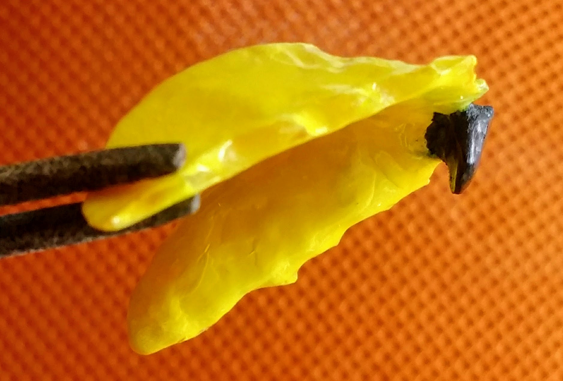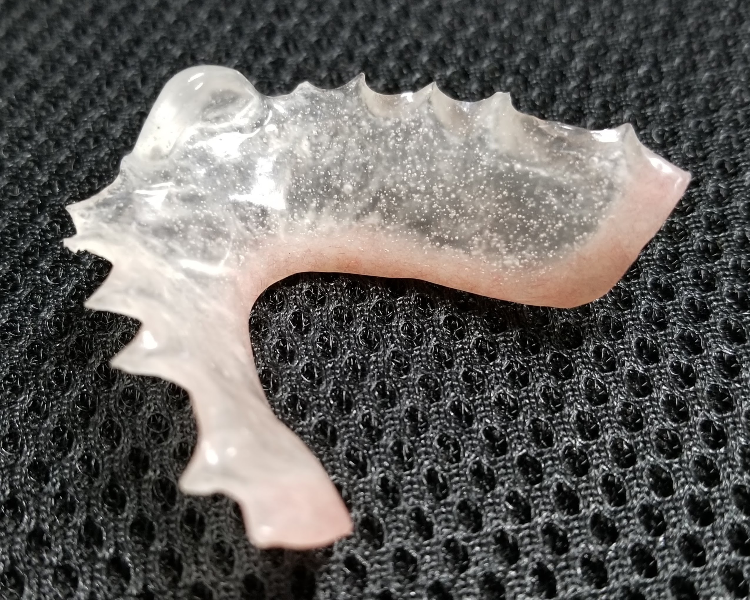 透明だと探す時に困るという訴えで義歯用加熱重合レジンで作ったもの